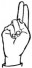 На ћирилици написано ЛАРА ДОРОСЛОВАЧКИ састоји се из 16 слова [?]. Исписано ћириличном једноручном азбуком за глувонеме: